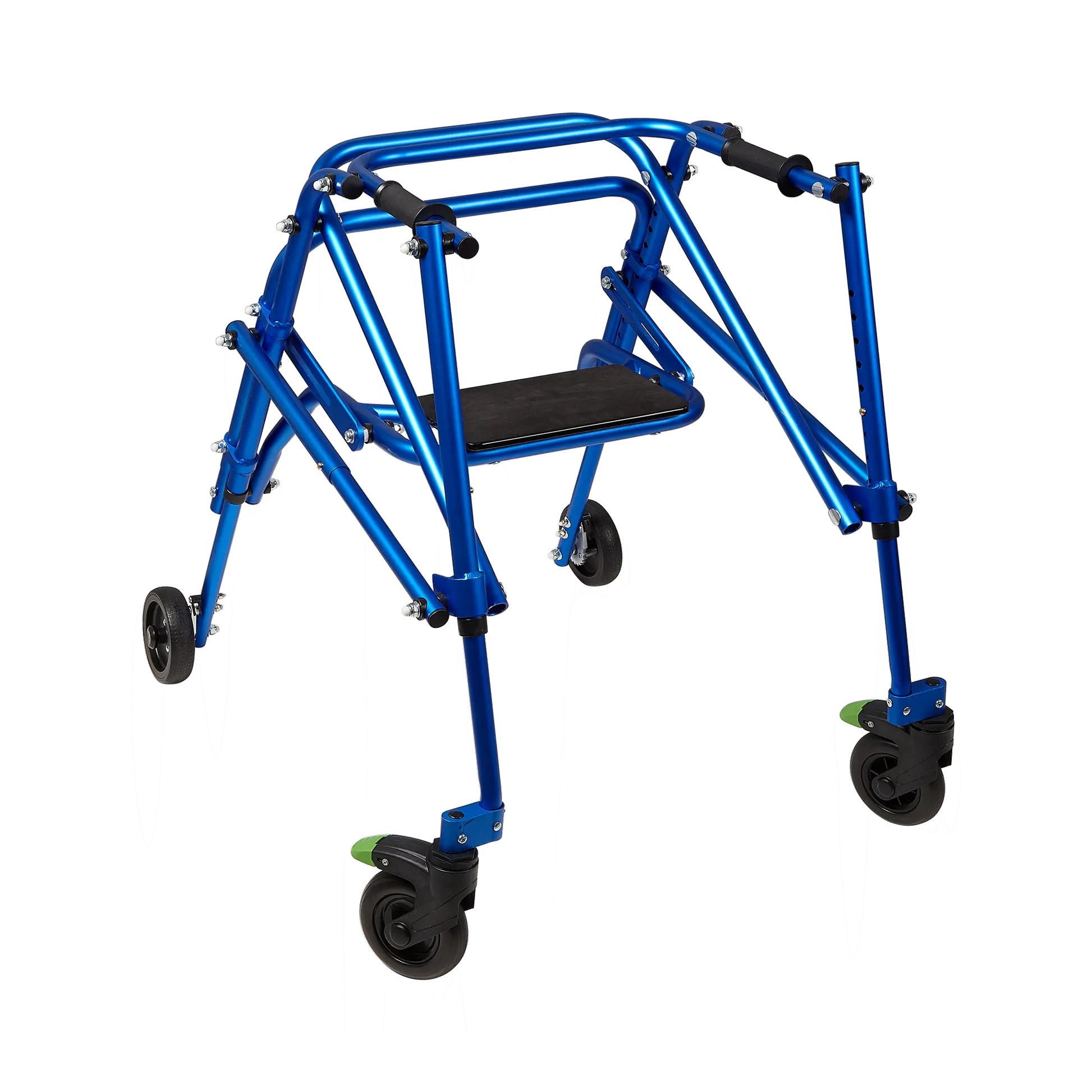 The Klip is a lightweight posterior gait trainer designed for kids, teens, and adults with special needs who require support and assistance. Positioned behind the user, The Klip is open in the walking postion and promotes upright walking and natural movement. The 4-wheeled Klip features a flip-up seat for easy turning and resting, ideal for those with limited endurance. It is recommended for individuals with Cerbral Paly and other neurological conditions. For added versatility, the Klip can also be used in the anterior position (except for the XS size).