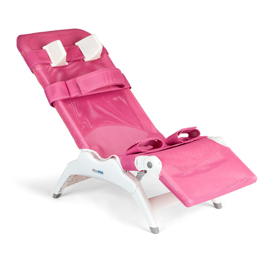 Responding to requests from therapists and caregivers, we widened these bath chairs to accommodate larger clients. And to protect skin integrity we added generous padding under soft knit fabric.